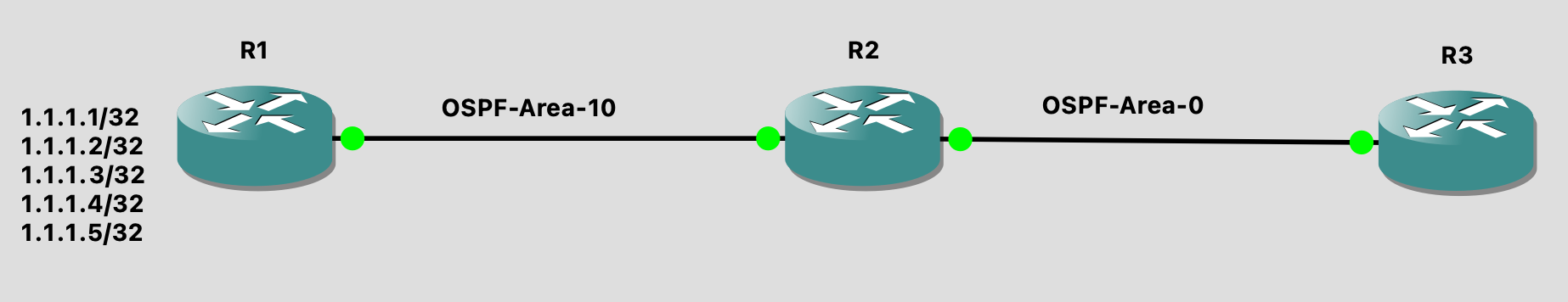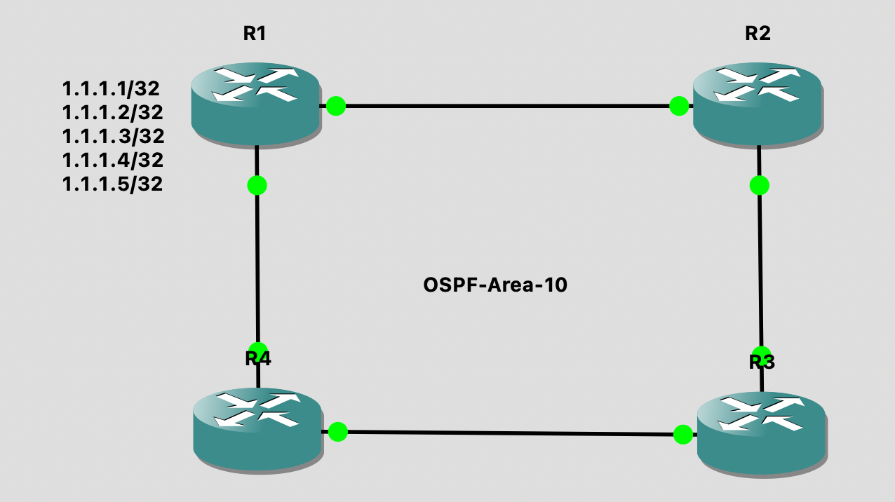 In this case, let's suppose R1 is already advertising the first 4 addresses to the domain and when we will add one more network 1.1.1.5/32 in OSPF it will regenerate the complete database again including previous prefixes and will share to complete domain